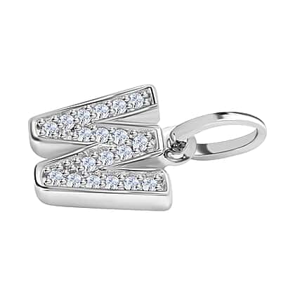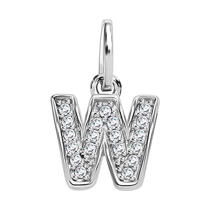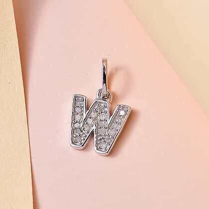 Diamond Initial W Pendant in Rhodium Overlay Sterling Silver 0.17 Ct