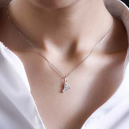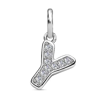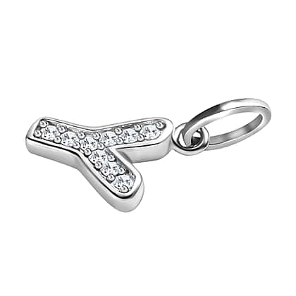 Diamond Initial Y Pendant in Rhodium Overlay Sterling Silver 0.17 Ct