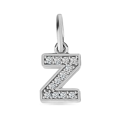 Diamond Initial Z Pendant in Rhodium Overlay Sterling Silver 0.17 Ct