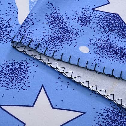 Bring warmth and enchanting charm into your room with this exquisite santa blanket, featuring a santa claus in winter with stars and abstract patterns. This soft throw in multicolours is expertly crafted with high-quality, smooth fabric to offer cosiness and instantly brighten up your space. The close-up image highlights the soft texture and neat stitching around the edges, adding to its overall appeal. Enhance your home decor this season with this soft santa claus blanket and add a touch of holiday vibe with comfort.