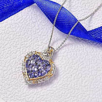 - Features a cluster of tanzanite gemstones in the heart-shaped pendant.