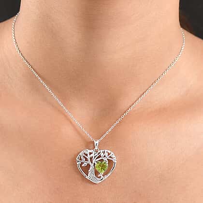 D'Joy Peridot Tree of Life Heart Pendant with Cable Chain (Size 20) in Black Oxidised Sterling Silver 1.61 Ct.