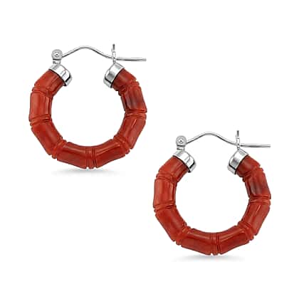 D'Joy Enhanced Red Jade Hoop Earrings with Clasp in Rhodium Overlay Sterling Silver 20.00 Ct.