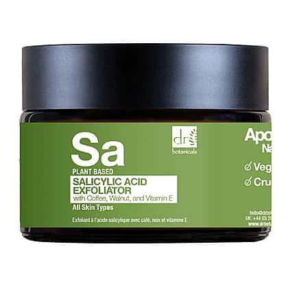 Transform your skincare routine into a refreshing ritual that reveals smoother, clearer-looking skin from the very first use. Dr. Botanicals smoothing exfoliator with salicylic acid is designed to refresh and refine your skin in one simple step. Infused with exfoliating coffee and walnut particles, it helps sweep away dull surface build-up while salicylic acid works to purify pores and target congestion. Vitamin E adds a nourishing boost, leaving skin feeling soft and comforted after every use. Perfect for a weekly reset, this energising formula supports a brighter-looking finish and a beautifully smooth texture that feels clean and balanced.