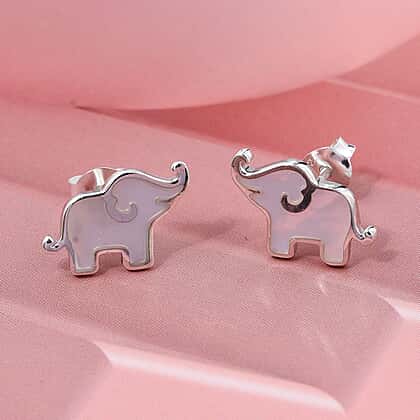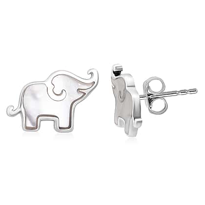 Mother Of Pearl Elephant Earring with Push Back Sterling Silver