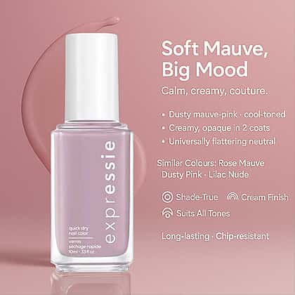 For those looking for softer, clean shades can go with ESSIE Expressie Nail Polish Throw It On that comes in subtle lilac-purple hue. It delivers a creamy wash of color that flatters every skin tone and every mood. One swipe gives you that clean, put-together finish that looks effortlessly elegant. Its quick-dry formula lets you perfect your nails in minutes, while the angled brush ensures precision without the fuss. Chic and conscious, the vegan formula gives you the luxury of shine without compromise. Subtle yet striking, it’s your go-anywhere pastel that pairs with everything from weekend denim to workday blazers.