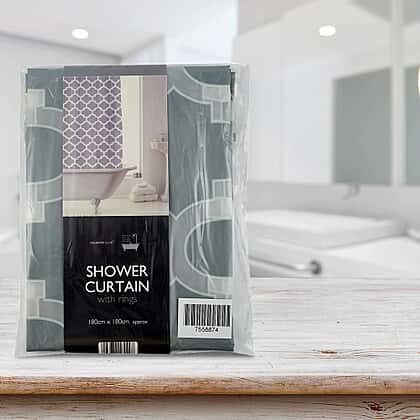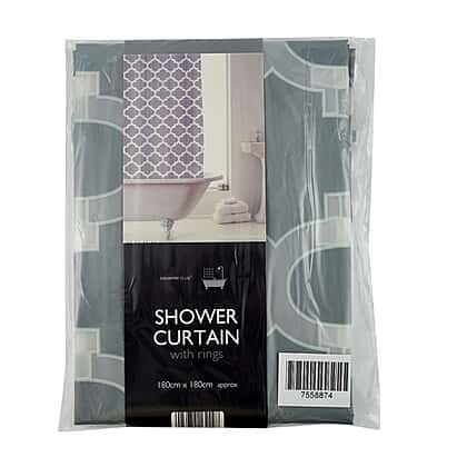 PEVA Shower Curtain Morrocan Grey (Size 180 cm) - Grey