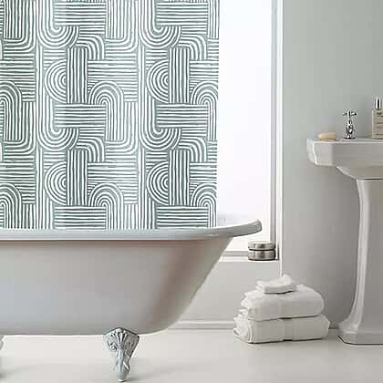 PEVA Shower Curtain with Hooks Boho Waves (Size 180 cm) - Light Green
