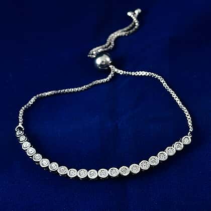 EverTrue White Diamond Tennis Adjustable Bracelet (Size - 10.5) in White Tone