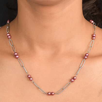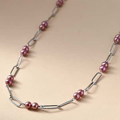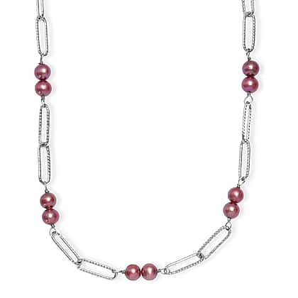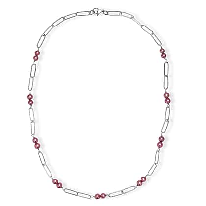 Bring vibrant charm to your outfit with this stunning dyed pink freshwater pearl necklace, a perfect fusion of artistry and beauty. The necklace is crafted with a paperclip design chain, offering a classy and captivating look. The design is complemented by the beauty of classy pink-toned pearls, providing a sophisticated look. Expertly crafted in pure stainless steel, this necklace includes durability and shine. The metal has hypoallergenic properties, making it suitable for sensitive skin. The elongated link design captures attention and can uplift any ensemble.