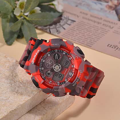GENOA TIME V2 Double Electronic Movement 3ATM Water Resistant Camouflage Red Multifunctional LED Dial Watch with TPU Strap