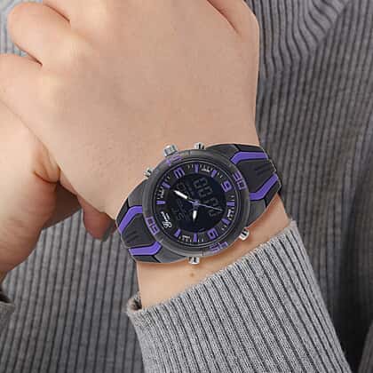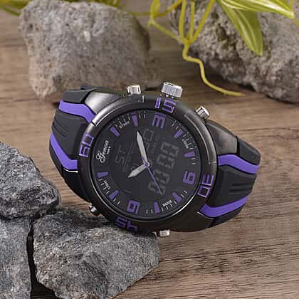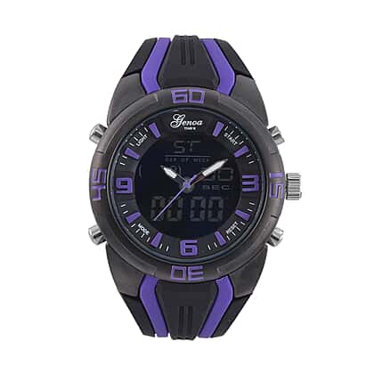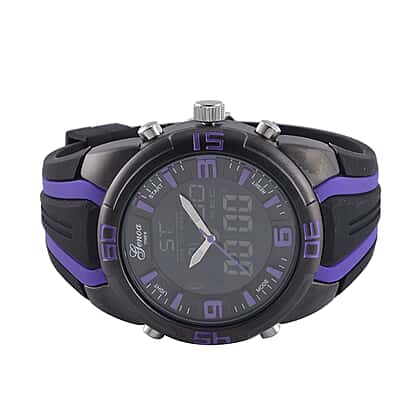 GENOA TIME V2 Japanese & Movement Multifunctional Black Literal Dial 5 ATM Water Resistant Watch With Black & Purple TPU Strap