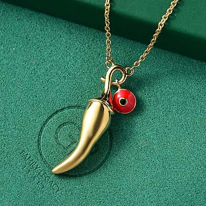 Bring a touch of bold charm to your jewellery box with this plain golden chilli charm necklace by the GP Chilli Pepper Collection, with a striking red evil eye charm. Known as a symbol of protection, passion, and positive energy, this 20-inch necklace carries more than style—it carries meaning. Crafted in sterling silver with a vermeil layer of 18K yellow gold, it’s hypoallergenic, tarnish-resistant, and comfortable for sensitive skin. Designed with a secure lobster clasp and a 20-inch chain, it’s perfect for layering or wearing solo when you want something striking yet versatile.