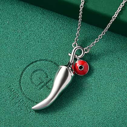 GP Chilli Pepper Collection - Plain Chilli Charm Necklace (Size - 20) in Rhodium Overlay Sterling Silver