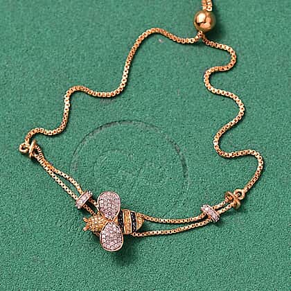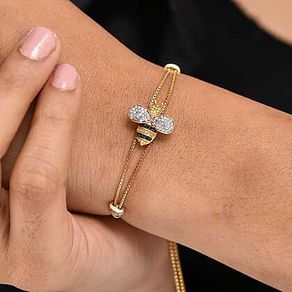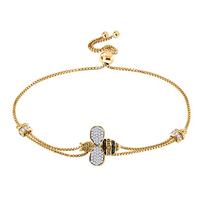 GP Italian Garden Collection - White Diamond, Multi Gemstones Honey Bee Bracelet (Size - 10.5) in 18K Vermeil Yellow Gold Plated Sterling Silver