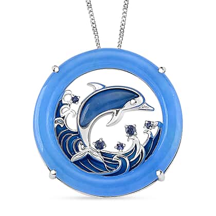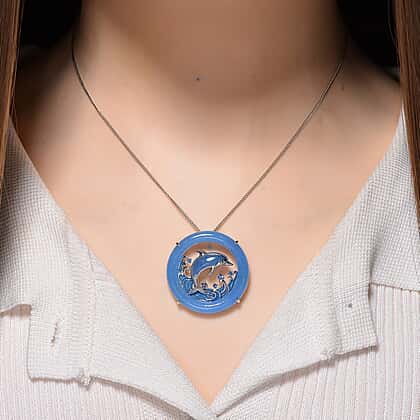 GP Sealife Collection - Blue Jade Sealife Pendant with Chain (Size 18) in Rhodium Overlay Sterling Silver 19.13 Ct.