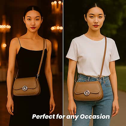 New Brand Launch - Grand Pelle Genuine Leather Crossbody Bag with Adjustable Strap - Khaki