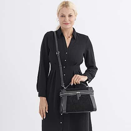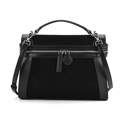 Grand Pelle Genuine Leather Satchel Handbag with Shoulder Strap - Black