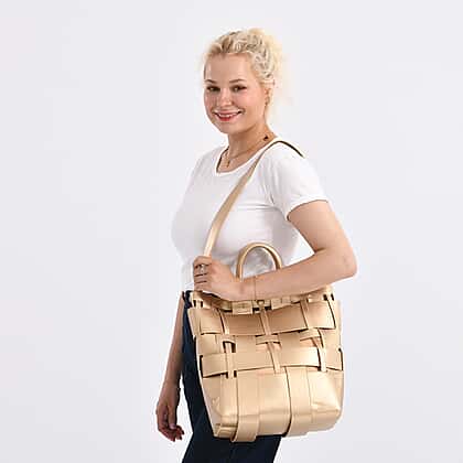 For those looking for a bag that is sure to steal the show can go with this woven crossbody bag. They are perfect for fashionable women who want to add a bit of pattern to their look. This bag also comes with a removable inside pouch for extra storage. This gold bag is made of PU leather and is softly structured. It simply makes for a piece that looks cool and super-versatile. This bag also features a drawstring closure that helps to keep your belongings safe. This chic bag makes for a great choice for outdoor hiking, beach parties or just to wear on a daily basis. Apart from the handle drop, it also comes with a detachable shoulder strap that helps you to easily switch between a handbag or a shoulder bag.