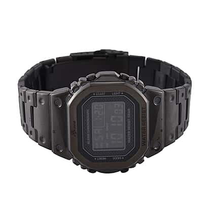 GENOA TIME V2 Japanese Movt. 5ATM Water Resistant Black Multifunctional LED Dial Watch with Stainless Steel Strap
