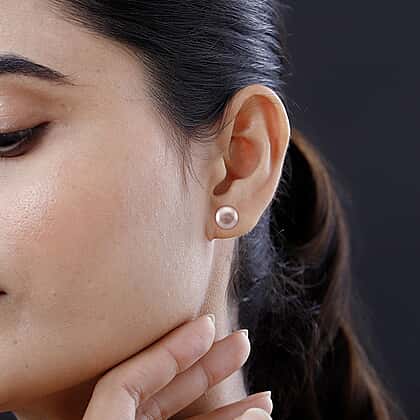 Keshi Pearl Coin Shape Stud Earring in Rhodium Overlay Sterling Silver