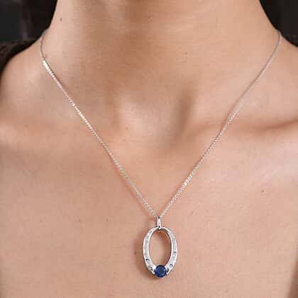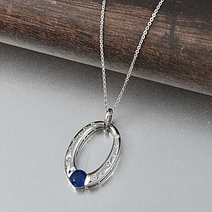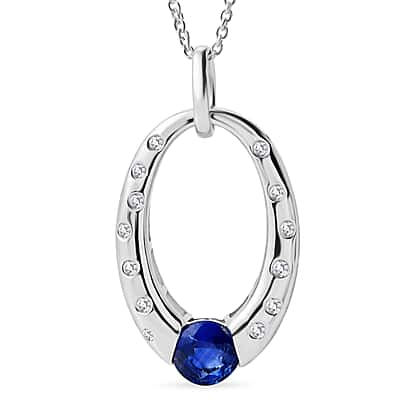 D'Joy AAA Natural Kashmir Kyanite & White Zircon Faceted Cut Pendant with Chain (Size 20) in Platinum Overlay Sterling Silver 1.30 Ct.