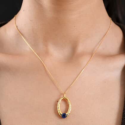 If you are looking for a truly impressive piece that feels every bit modern and eye-catching, this Kashmir kyanite and white zircon pendant makes for the cut. The open oval silhouette feels architectural and light, traced with white zircon accents that sparkle beautifully. At the centre features a round Kashmir kyanite glowing in inky blue hues with its deep saturation. It creates a striking contrast against the warmth of yellow gold-plated sterling silver. The placement of the stone at the base gives the piece a contemporary edge, balancing minimalism with bold colour. The pendant comes with a fine chain and is ideal for individuals looking for contemporary pieces.