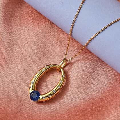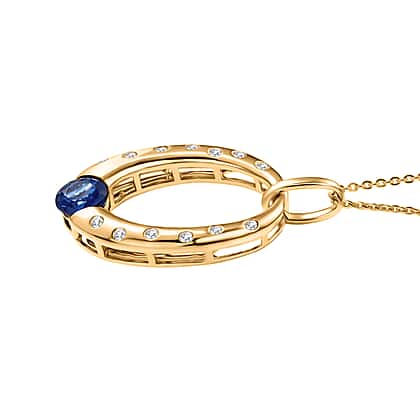 D'Joy AAA Natural Kashmir Kyanite & White Zircon Faceted Cut Pendant with Chain (Size 20) in Yellow Gold Plated Sterling Silver 1.30 Ct.