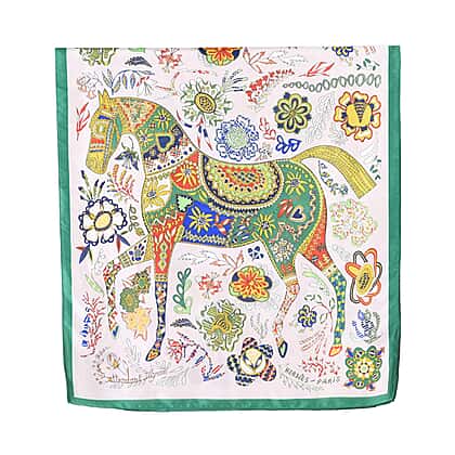 La Marey Elegant Horse Pattern Satin Scarf (180x80cm) - White
