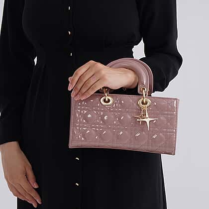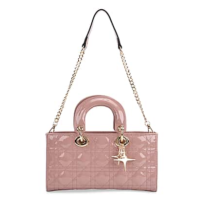 La Marey Genuine Leather Quilted Handbag Bag With Detachable Shoulder Strap - Pink