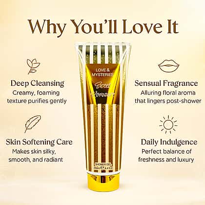 Exclusively crafted to offer an ultimate shower experience with this love & mysteries sweet romance shower gel. Formulated with rich and floral fragrances, this shower gel has creamy lather that is gentle on the skin. The cleanser offers gentle cleansing and instantly adds freshness to the skin, making your shower experience the best. The enchanting hot fragrance of the gel provides a sensual aroma that lasts for a long time, even after the shower. Ideal for everyday showers that improve your daily bodycare routine, adding a touch of mystery.