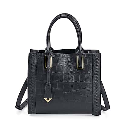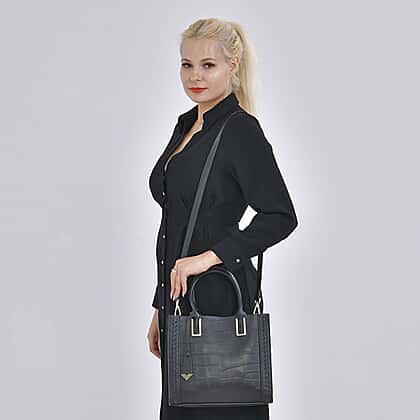Leather Solid Crossbody Bag (Size 28x9x25 cm) - Black