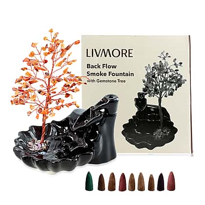 Livmore Red Carneline Crystal Tree Backflow Incense Burner Set - Includes 30 Cones (18 x 10 x 20 Cm)