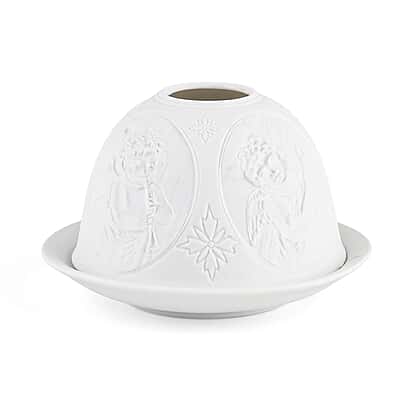 LIVMORE Christmas Porcelain Tealight Candle Holder - Angel Pattern, 13-Color LED Light with Remote Control