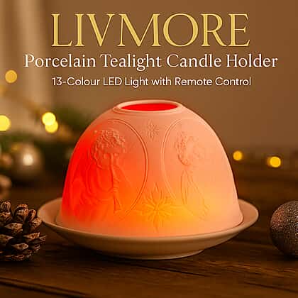 This LIVMORE Christmas porcelain tealight candle holder features an elegant angel pattern, making it the perfect addition to your festive beauty. The 13-colour LED light creates a vibrant glow, and with the included remote control, you can easily switch between colours to set the perfect mood for your holiday celebrations. The durable porcelain material adds a touch of sophistication, and the candle holder's unique design brings a warm, festive charm to any room. Ideal for adding a peaceful, festive ambience to your Christmas celebrations.