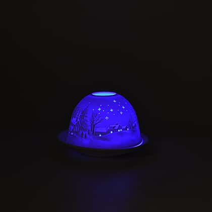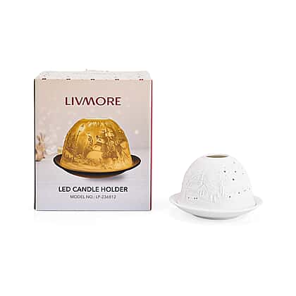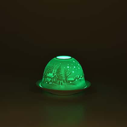 LIVMORE Christmas Porcelain Tealight Candle Holder - Chapel in Winter Pattern, 13-Color LED Light with Remote Control