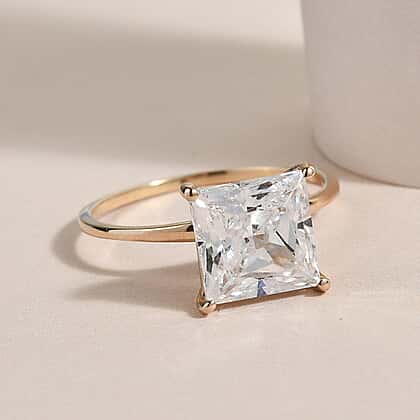 Lustro Stella - 9K Yellow Gold Solitaire Ring Made with Finest CZ 4.83 Ct.