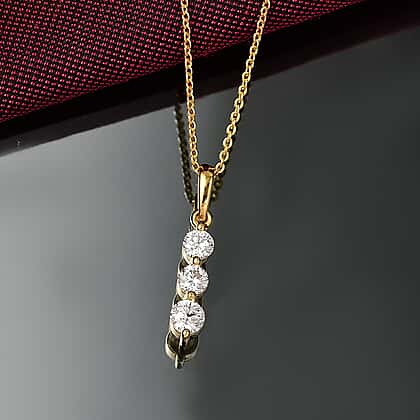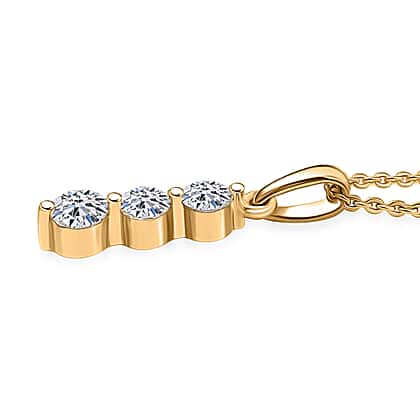 LUXURIANT 0.50 Ct. Lab Grown Diamond Trilogy Pendant with Chain (Size 20) in 18K Vermeil Yellow Gold Sterling Silver (SI-GH)