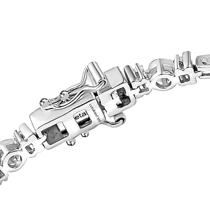 LUXURIANT 1 Ct. Lab Grown Diamond Station Bar Bracelet (Size - 7.5) with GB Box Clasp in Rhodium Overlay Sterling Silver