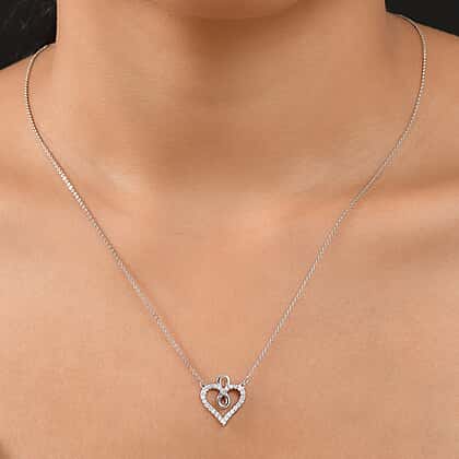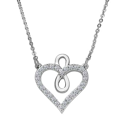 Celebrate everlasting affection with this exquisite lab grown diamond heart necklace in rhodium overlay sterling silver. The 20-inch chain holds a graceful heart motif wrapped around an infinity symbol, blending two timeless emblems of love and unity. Sparkling lab created diamonds, known for their durability, fire and brilliance, enhance the pendant with elegant charm. The hypoallergenic 925 sterling silver is coated in a tarnish-resistant rhodium finish, ideal for sensitive skin and everyday wear. Whether gifted or kept for yourself, this meaningful design brings a sense of connection, making it more than a necklace—it’s a personal expression of love.