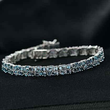 Adorn your wrist with this luxurious lab-grown blue diamond cluster bracelet, designed to deliver refined colour and confident sparkle. The piece features a continuous row of lab-grown diamonds in an oceanic blue hue, embodying luxury.  Carefully set in rhodium overlay sterling silver, the bracelet ensures lasting shine and durability. The cool-toned diamonds add depth and visual interest, while the polished silver setting keeps the finish clean and well-defined. A secure lockbox clasp ensures a comfortable, reliable fit. Thoughtfully crafted and carefully proportioned, this bracelet brings together a strong gemstone presence and polished silver detail in one striking design.
