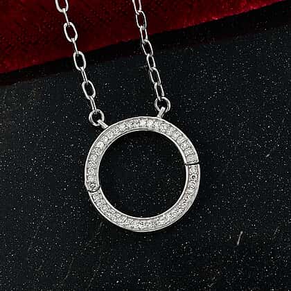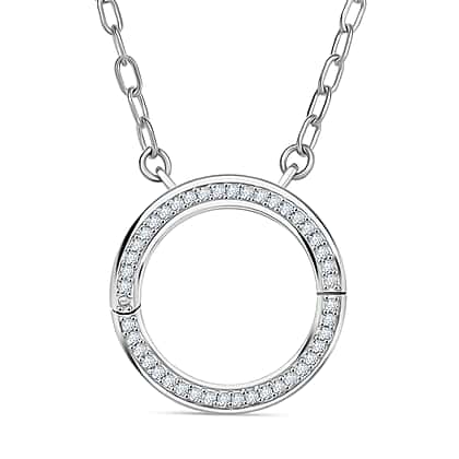 Luxuriant Lab Grown Diamond (SI-GH) Openable Circle Pendent (Size - 20) in Rhodium Overlay Sterling Silver 0.25Cts