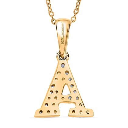 LUXURIANT Lab Grown Diamond A Initial Pendant with Chain (Size 18 - 2 Ext) in 18K Vermeil Yellow Gold Over Sterling Silver (VS-EF)