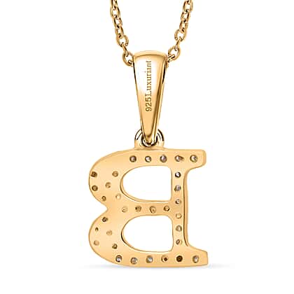 LUXURIANT Lab Grown Diamond B Initial Pendant with Chain (Size 18 - 2 Ext) in 18K Vermeil Yellow Gold Over Sterling Silver (VS-EF)