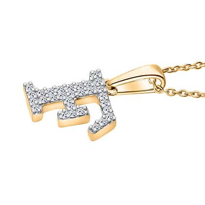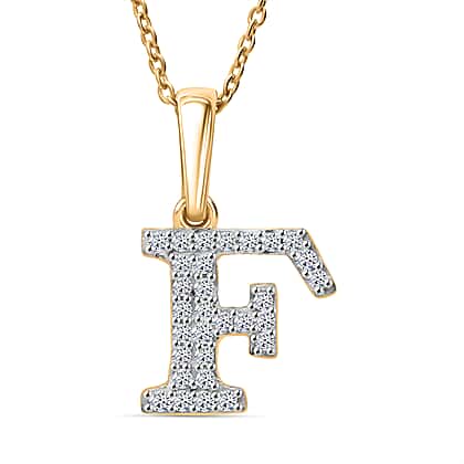 LUXURIANT Lab Grown Diamond F Initial Pendant with Chain (Size 18 - 2 Ext) in 18K Vermeil Yellow Gold Over Sterling Silver (VS-EF)