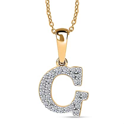 LUXURIANT Lab Grown Diamond G Initial Pendant with Chain (Size 18 - 2 Ext) in 18K Vermeil Yellow Gold Over Sterling Silver (VS-EF)