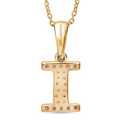 LUXURIANT Lab Grown Diamond I Initial Pendant with Chain (Size 18 - 2 Ext) in 18K Vermeil Yellow Gold Over Sterling Silver (VS-EF)
