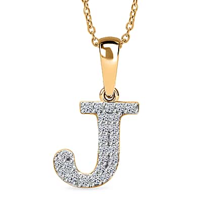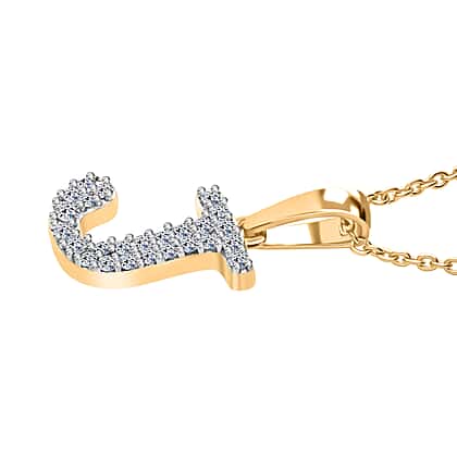 LUXURIANT Lab Grown Diamond J Initial Pendant with Chain (Size 18 - 2 Ext) in 18K Vermeil Yellow Gold Over Sterling Silver (VS-EF)