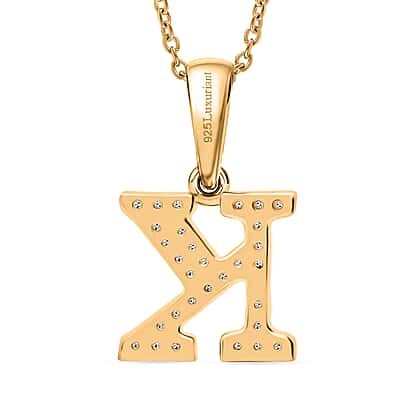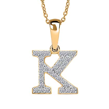 LUXURIANT Lab Grown Diamond K Initial Pendant with Chain (Size 18 - 2 Ext) in 18K Vermeil Yellow Gold Over Sterling Silver (VS-EF)