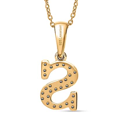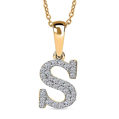 LUXURIANT Lab Grown Diamond S Initial Pendant with Chain (Size 18 - 2 Ext) in 18K Vermeil Yellow Gold Plating Sterling Silver (VS-EF)